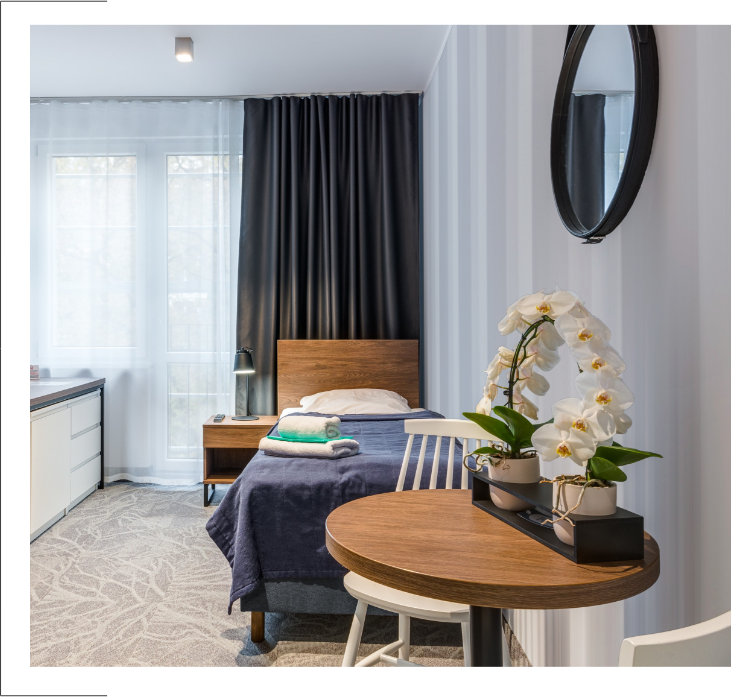 Sanatorium dysponuje ograniczoną liczbą pokoi dwuosobowych, które są udostępniane w kolejności przybycia. Nie gwarantujemy wspólnego zakwaterowania w jednym pokoju dla wszystkich par.